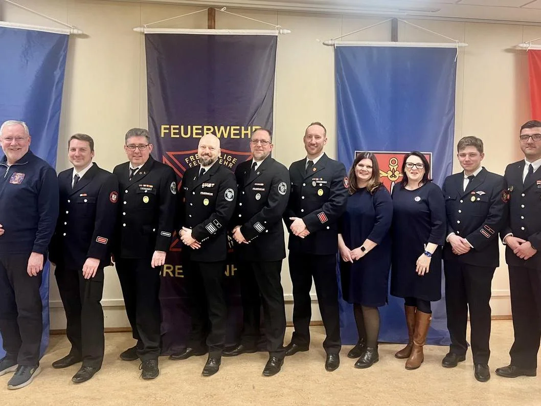 Wehrführer Sebastian Zimmer eröffnete die Versammlung und begrüßte die anwesenden Kameradinnen und Kameraden sowie die Ehrengäste. Im Anschluss gedachte die Versammlung der im vergangenen Jahr verstorbenen Mitglieder und Kameraden.